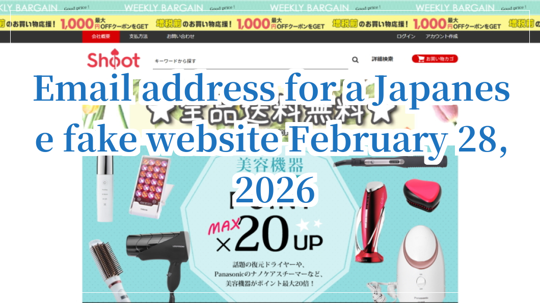 Email address for a Japanese fake website February March 2, 2026